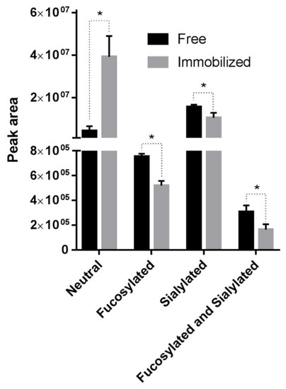3.4. N-glycan Analysis by MALDI-ToF Mass Spectrometry