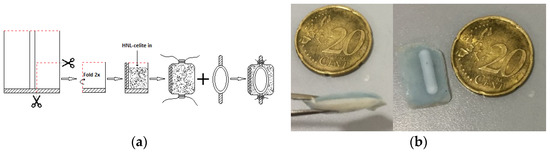 Method b (Figure 6b): as above, a teabag for the entrapment of the immobilized enzyme was utilized. Celite particles were loosely packed, allowing movement of the particles. This bag with the enzyme was sealed together with a blue nylon bag containing the magnetic stirring bar. With both methods, no leaking of the solid material was observed.
