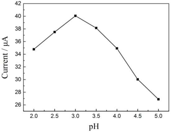 Effect of pH on the response peak current of 1 × 10−5 mol/L dopamine on the MnO2 NWs-RGO/GCE.