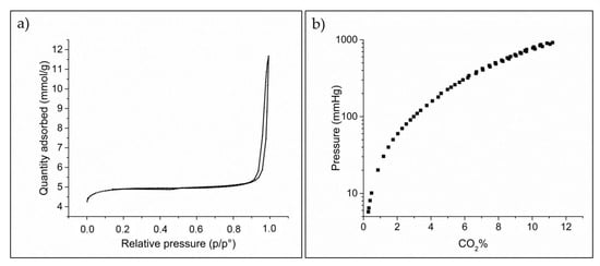 (a) N2 adsorption isotherm of TiO2/HKUST-1 at T = 77 K; (b) Pressure–composition plot for CO2 physisorption on TiO2/HKUST-1 at T = 303 K.
