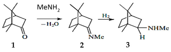 Reductive amination of camphor (1) with methylamine for synthesis of N-methylbornan-2-ylamine. Adapted from [68].