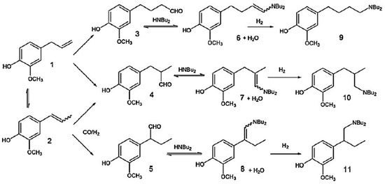 Hydroaminomethylation of eugenol with di-n-butylamine. Reprinted from [79] with permission from Elsevier.