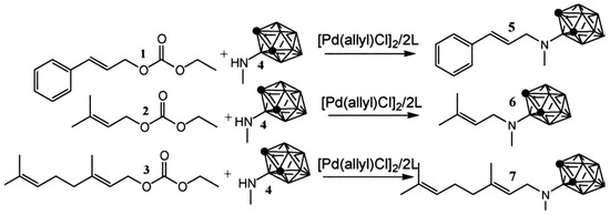 - Lyubimov, S.E.; Kuchurov, I.V.; Verbitskaya, T.A.; Rastorguev, E.A.; Kalinin, V.N.; Zlotin, S.G.; Davankov, V.A. Pd-catalyzed allylic amination in supercritical carbon dioxide: Synthesis of carborane-containing terpenoids. J. Supercrit. Fluids 2010, 54, 218–221. [Google Scholar] [CrossRef]