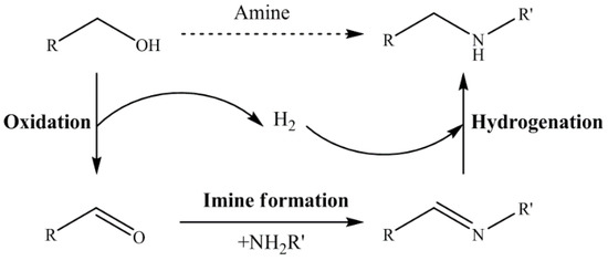 - Corma, A.; Navas, J.; Sabater, M.J. Advances in one-pot synthesis through borrowing hydrogen catalysis. Chem. Rev. 2018, 118, 1410–1459. [Google Scholar] [CrossRef] [PubMed]