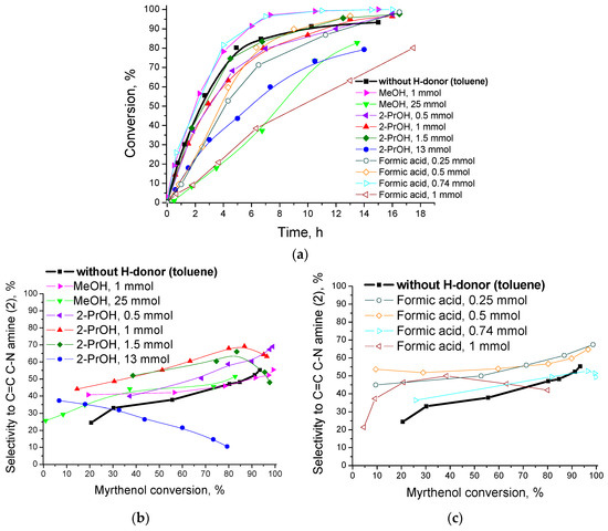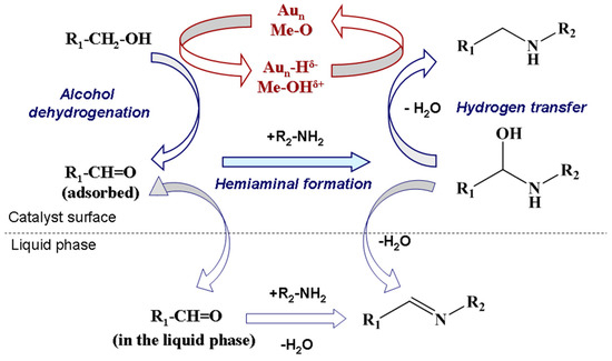 - Demidova, Y.S.; Suslov, E.V.; Simakova, I.L.; Volcho, K.P.; Salakhutdinov, N.F.; Simakov, A.; Murzin, D.Y. Promoting effect of alcohols and formic acid on Au-catalyzed one-pot alcohol amination. Mol. Catal. 2017, 433, 414–419. [Google Scholar] [CrossRef]