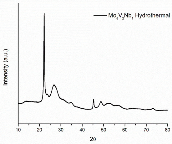 X-ray diffraction (XRD) pattern of hydrothermally prepared base MoVNbOx catalyst.
