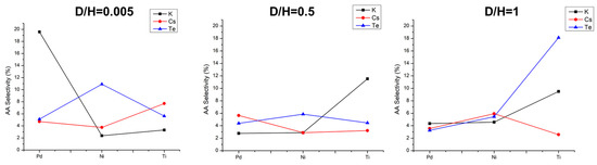Interaction between redox element, acid element, and D/H level for AA selectivity.