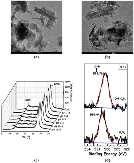 - Zheng, Y.; Zhang, Z.; Li, C.; Proulx, S. Surface hydroxylation of graphitic carbon nitride: Enhanced visible light photocatalytic activity. Mater. Res. Bull. 2016, 84, 46–56. [Google Scholar] [CrossRef]