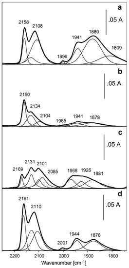 where ν is the frequency, c is the light speed, k is the force constant related to the bond between the two atoms which constitute the oscillator, and μ represents the reduced mass of the oscillator. As a consequence, the position of an IR band depends either on the strength of the bond or on the mass (isomeric effect). This implies that the specific physicochemical properties of the molecule or adsorbate (i.e., when performing a FTIR experiment of adsorbed probe molecules), i.e., the bonds involved and the local environment, affect the position of the IR absorbance peak, making the technique diagnostic, since the corresponding IR spectrum represents a fingerprint of that particular functional group, such as C–H, O–H, C=O, C≡O, N=N, and so on. Moreover, similar vibrational modes possess similar energetics, meaning that the interpretation of the IR spectra of unknown species is useful to identify the specific moieties that constitute the sample. In particular, the position of the absorption bands of the adsorbed species gives a measure of the strength of the bond between the adsorbate and the adsorbing site [73]. Moreover, the specific frequencies of individual vibrational modes can probe the chemical nature of the surrounding catalytic environment.