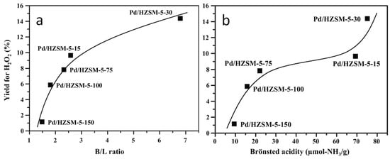 It has also been reported that acidity of the catalysts played a crucial role in determining the catalytic performance in the direct synthesis of hydrogen peroxide [66,67]. Approaches, such as the catalyst wet pre-treatment method (CWPM), involving the post-modification of commercially available Pd catalysts with aqueous solutions of Br− with different concentrations, have been shown to enhance the selectivity [30].