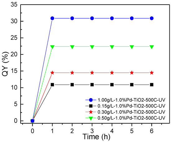 Considering that 1.00 wt% Pd–TiO2 showed the best performance in terms of hydrogen production, additional experiments were carried out to determine the influence of the catalyst concentration during photoreaction.