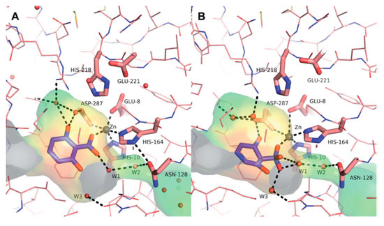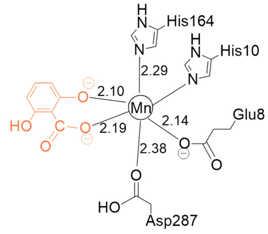 The research group of Zhou [66] succeeded recently in isolating a new enzyme, 2,3-dihydroxybenzoic acid decarboxylase from Fusarium oxysporum, thus expanding the toolbox for phenols’ carboxylation (the representative reaction is shown in Table 2, entry 2). The enzyme shows a molecular mass of 143.6 kDa, suggesting a homotetrameric structure similar to 2,3-DHBD_Ao, 2,6-DHBD_Rs, and SAD_Tm proteins. The sequence alignment comparison with 2,6-DHBD_Rs showed a 45% amino acid identity. Amino acids of the catalytic triad found in 2,6-DHBD_Rs (Asp287, His218, Glu221, see Section 6.1) are conserved in 2,3-DHBD_Fo.