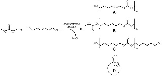 - Jiang, Z.; Liu, C.; Xie, W.; Gross, R.A. Controlled lipase-catalyzed synthesis of poly(hexamethylene carbonate). Macromolecules 2007, 40, 7934–7943. [Google Scholar] [CrossRef]