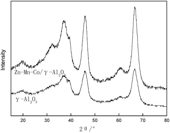 X-ray diffraction patterns of γ-Al2O3 and Zn-Mn-Co modified γ-Al2O3.