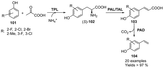 - Kroutil, W.; Busto, E.; Simon, R. Method for Producing p-vinylphenols. AT516155A4, 15 March 2016. [Google Scholar]