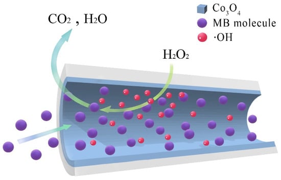 Schematic diagram of the MB adsorbed and degraded by the mesoporous Co–SiO2 catalyst.