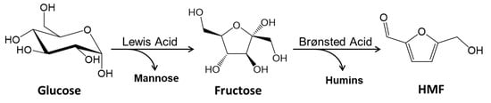 - Pidko, E.A.; Degirmenci, V.; Hensen, E.J.M. On the Mechanism of Lewis Acid Catalyzed Glucose Transformations in Ionic Liquids. ChemCatChem 2012, 4, 1263–1271. [Google Scholar] [CrossRef]