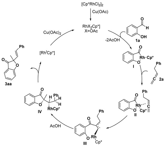 - Kuppusamy, R.; Gandeepan, P.; Cheng, C.H. Rh(III)-Catalyzed [4 + 1] Annulations of 2-hydroxy-and 2-aminobenzaldehydes with allenes: A simple method toward 3-coumaranones and 3-indolinones. Org. Lett. 2015, 17, 3846–3849. [Google Scholar] [CrossRef] [PubMed]