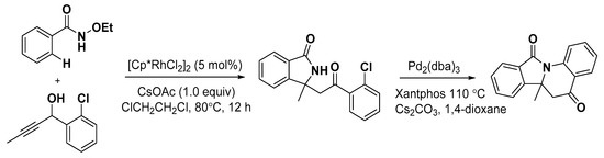 - Song, G.; Chen, D.; Pan, C.L.; Crabtree, R.H.; Li, X. Rh-catalyzed oxidative coupling between primary and secondary benzamides and alkynes: Synthesis of polycyclic amides. J. Org. Chem. 2010, 75, 7487–7490. [Google Scholar] [CrossRef] [PubMed]