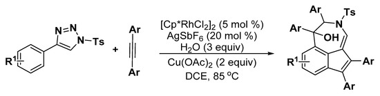 - Muralirajan, K.; Parthasarathy, K.; Cheng, C.H. Regioselective synthesis of indenols by rhodium-catalyzed C–H activation and carbocyclization of aryl ketones and alkynes. Angew. Chem. Int. Ed. 2011, 50, 4169–4172. [Google Scholar] [CrossRef] [PubMed]