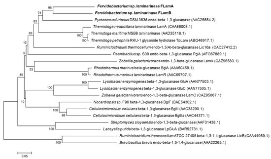 - Schwarz, W.H.; Schimming, S.; Staudenbauer, W.L. Isolation of a Clostridium thermocellum gene encoding a thermostable β-1,3-glucanase (laminarinase). Biotechnol. Lett. 1988, 10, 225–230. [Google Scholar] [CrossRef]