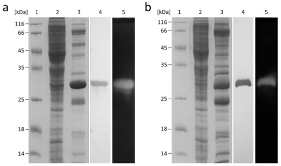 - Laemmli, U.K. Cleavage of Structural Proteins during the Assembly of the Head of Bacteriophage T4. Nature 1970, 227, 680–685. [Google Scholar] [CrossRef] [PubMed]