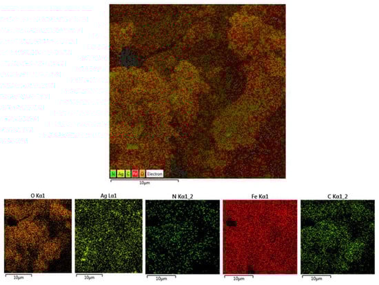 3.5. Deposition of Silver Nanoparticles on Modified Magnetic Chitosan (Fe3O4@CS@MS@Ag)