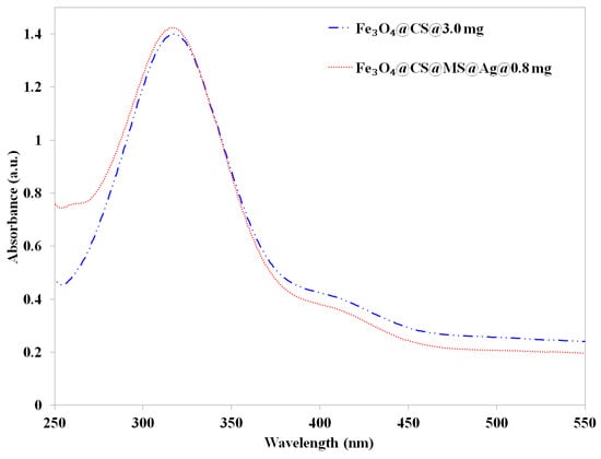 blue line) and 0.8 mg (6.5 × 10−7 mol Ag) of Fe3O4@CS@MS@Ag (