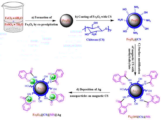 - Shin, K.S.; Choi, J.-Y.; Park, C.S.; Jang, H.J.; Kim, K. Facile synthesis and catalytic application of silver-deposited magnetic nanoparticles. Catal. Lett. 2009, 133, 1–7. [Google Scholar] [CrossRef]