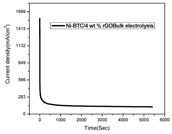 Bulk electrolysis of Ni-BTC/4 wt % rGO composites in 1 M NaOH and 2 M methanol solution at peak potential of 0.69 V.