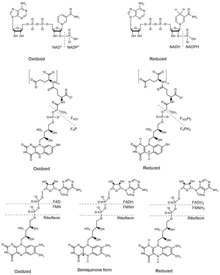 - Greening, C.; Ahmed, F.H.; Mohamed, A.E.; Lee, B.M.; Pandey, G.; Warden, A.C.; Scott, C.; Oakeshott, J.G.; Taylor, M.C.; Jackson, C.J. Physiology, biochemistry, and applications of F420- and Fo-dependent redox reactions. Microbiol. Mol. Biol. Rev. 2016, 80, 451–493. [Google Scholar] [CrossRef]
