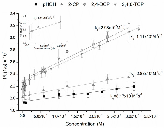 24], but they were of the same order of magnitude. The quenching constants changed depending on the concentration range, as shown in