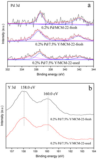 | 0.2%Pd/7.5%Y/MCM-22-used | Pd0 | 335.3 | 340.5 | 47.8 | 52.2 | 0.18 | 41 |