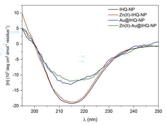 | Zn(II)-Au@IHQ-NP 2 | 7.97 ± 0.41 | 0.50 ± 0.03 | 16.06 ± 1.78 |