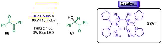 - Neumann, M.; Füldner, S.; König, B.; Zeitler, K. Metal-free, cooperative asymmetric organophotoredox catalysis with visible light. Angew. Chem. Int. Ed. 2011, 50, 951–954. [Google Scholar] [CrossRef] [PubMed]
