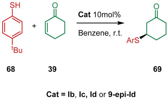 - Hiemstra, H.; Wynberg, H. Addition of Aromatic Thiols to Conjugated Cycloalkenones, Catalyzed by Chiral β-Hydroxy Amines. A Mechanistic Study on Homogeneous Catalytic Asymmetric Synthesis. J. Am. Chem. Soc. 1981, 103, 417–430. [Google Scholar] [CrossRef]