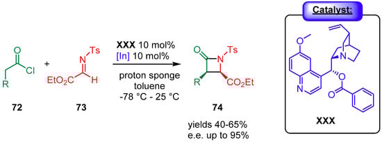 - Taggi, A.E.; Hafez, A.M.; Wack, H.; Young, B.; Drury, W.J.; Lectka, T. Catalytic, asymmetric synthesis of β-lactams. J. Am. Chem. Soc. 2000, 122, 7831–7832. [Google Scholar] [CrossRef]