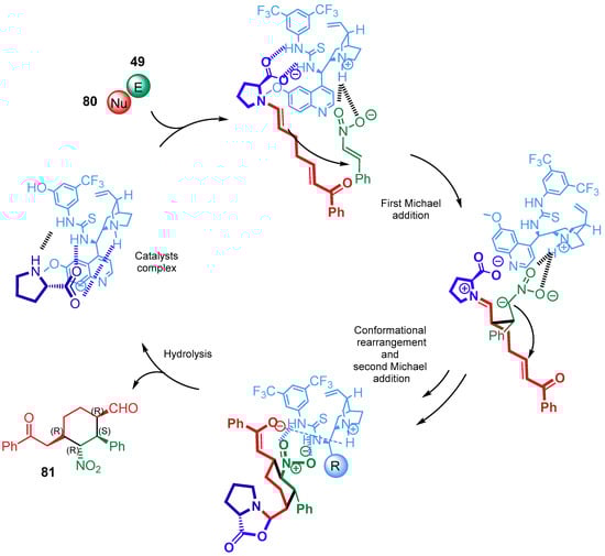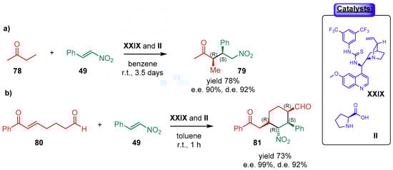 - Bhaskararao, B.; Sunoj, R.B. Two chiral catalysts in action: Insights into cooperativity and stereoselectivity in proline and cinchona-thiourea dual organocatalysis. Chem. Sci. 2018, 9, 8738–8747. [Google Scholar] [CrossRef]