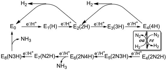 - Seefeldt, L.C.; Deanb, D.R.; Hoffman, B.M. Nitrogenase Mechanism: Electron and Proton Accumulation and N2 Reduction. In Molybdenum and Tungsten Enzymes: Biochemistry; Royal Society of Chemistry: London, UK, 2017. [Google Scholar]