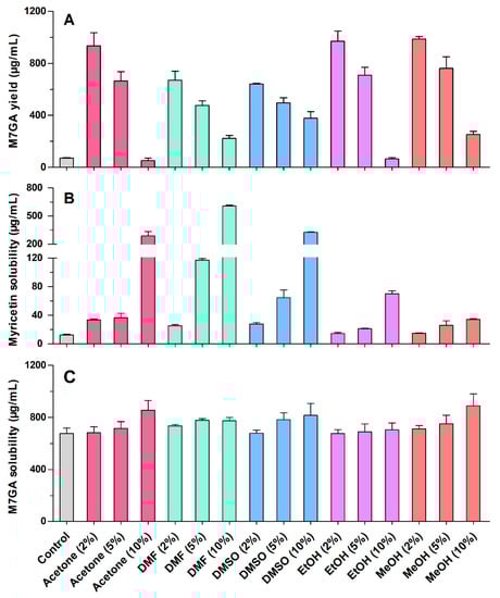 Yang, Y.; Liu, M.-Z.; Cao, Y.-S.; Li, C.-K.; Wang, W. Low-Level Organic Solvents Improve Multienzyme Whole-Cell Catalytic Synthesis of Myricetin-7-O-Glucuronide. Catalysts 2019, 9, 970. https://doi.org/10.3390/catal9110970
