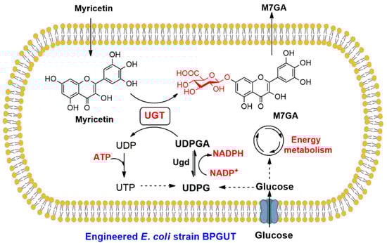 - Yang, Y.; Wang, H.M.; Tong, Y.F.; Liu, M.Z.; Cheng, K.D.; Wu, S.; Wang, W. Systems metabolic engineering of Escherichia coli to enhance the production of flavonoid glucuronides. RSC Adv. 2016, 6, 33622–33630. [Google Scholar] [CrossRef]