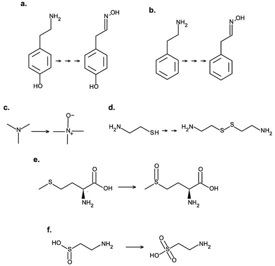 - Lin, J.; Cashman, J.R. Detoxication of tyramine by the flavin-containing monooxygenase: Stereoselective formation of the trans oxime. Chem. Res. Toxicol. 1997, 10, 842–852. [Google Scholar] [CrossRef] [PubMed]