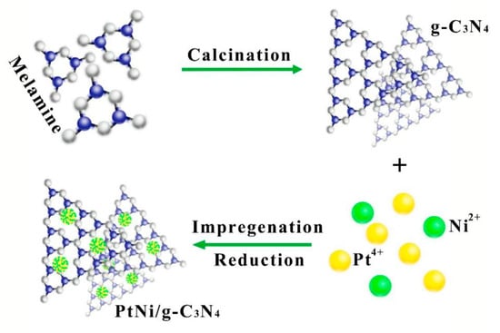 Schematic illustration of the fabrication of PtNi/g-C3N4.