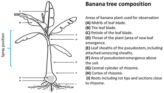 Banana tree composition [28] and the spray areas in this experiment.