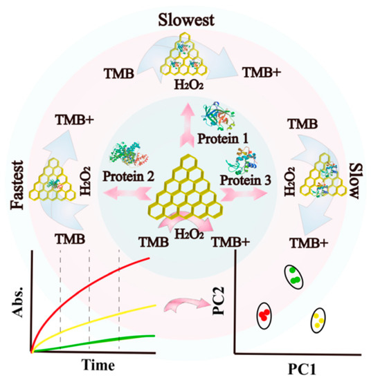 - Qiu, H.; Pu, F.; Ran, X.; Liu, C.; Ren, J.; Qu, X. Nanozyme as artificial receptor with multiple readouts for pattern recognition. Anal. Chem. 2018, 90, 11775–11779. [Google Scholar] [CrossRef]