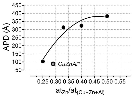Effect of the Zn/(Cu + Zn + Al) atomic ratio on the average pore diameter (APD) of the hydrotalcite-like catalysts. * Reference CuZnAl catalyst.