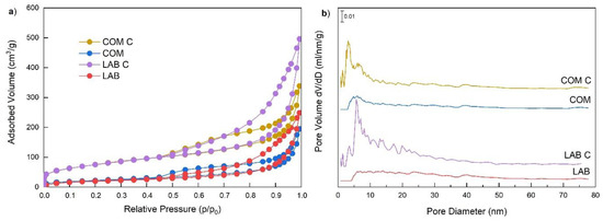 | Sample | Specific Surface Area (m2/g) | Total Pore Volume (cm3/g) | Micropore Volume (cm3/g) | Mesopore Volume (cm3/g) |