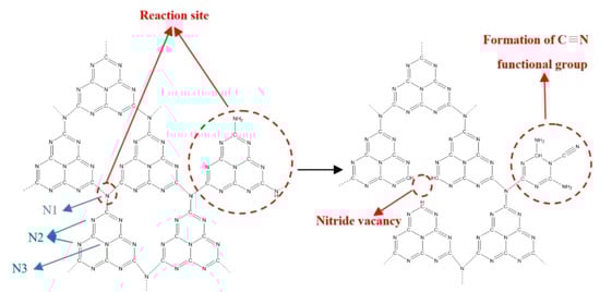 Nitrogen defects on CN matrix after thermal treatment. Adapted with permission from reference [110]. Copyright 2018 Elsevier B.V.