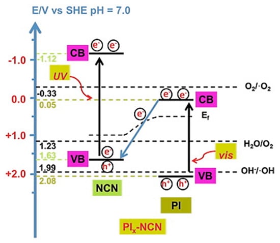 Energy diagram for the Z-scheme structure of the CN-perylene imide (PI) photocatalyst. Adapted with permission from reference [96]. Copyright 2017 Elsevier B.V.