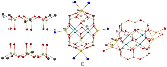 - Astakhov, G.S.; Bilyachenko, A.N.; Levitsky, M.M.; Korlyukov, A.A.; Zubavichus, Y.V.; Dorovatovskii, P.V.; Khrustalev, V.N.; Vologzhanina, A.V.; Shubina, E.S. Tridecanuclear CuII11Na2 Cagelike Silsesquioxanes. Cryst. Growth Des. 2018, 18, 5377–5384. [Google Scholar] [CrossRef]